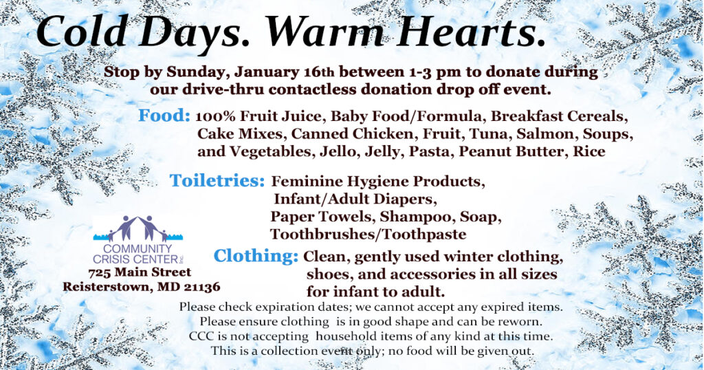 There are many ways to donate to the Community Crisis Center. We are grateful for all of your donations, which help us help others.
